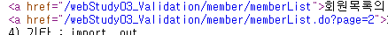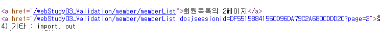 2) 흐름 제어 : 조건문 : if다중조건문 : choose<c:set var="test" value="테스트" scope="request"/><!-- (기본은 페이지 스코프에 들어가있음) --> ${requestScope.test }, 연상구조배열 :${requestScope["test"] } <c:remove var="test" scope="request"/><!-- 스코프를 안쓰면 모든 스코프에 test를 다지워버린다 --> ${requestScope.test }, ${requestScope["test"] }otherwise반복문 : forEach3) URL (재)처리 : url , (클라이언트에서 사용할수있는 절대경로를 만들어줌), (쿠키트레킹체크해서 쿠키가 없더라도 세션을 유지할수있게해줌)when <c:url var="memberList" value="/member/memberList.do"> <c:param name="page" value="2"></c:param> <!-- 페이지만들어줌 --> </c:url> <a href="${cPath }/member/memberList">회원목록의 2페이지</a> <a href="${memberList }">회원목록의 2페이지</a>향상된 for문 : for(block variable : collection) : items, var <%-- <c:forEach items="" var=""> </c:forEach> --%> 일반 for문 : for(선언절;조건절;증감절) : var, begin, end, step ...(주의사항 step은 0보다 커야한다, 1인경우 생략가능) LoopTagStatus(varStatus) 프로퍼티 : index(var속성의 값), count(몇번째 반복인지) first, last <c:forEach var="i" begin="1" end="5" step="2" varStatus="vs"> ${i } - ${vs.count } 번째 반복,${vs.first },${vs.last } </c:forEach><c:choose> <c:when test="${ empty test}">없다</c:when> <c:when test="${not empty test}">있다</c:when> </c:choose><c:if test="${empty test }"> test없음. </c:if> 삼항:${empty test ? "없다" : "있다" }- 1)EL 변수(속성) 지원 : set, remove