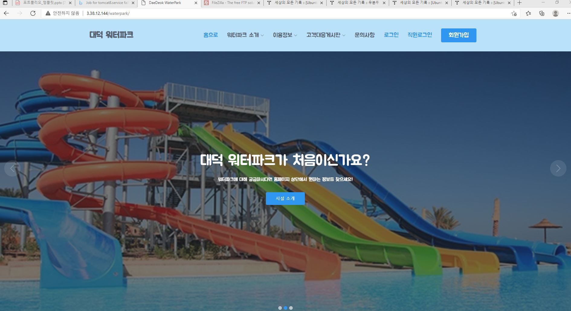 - 이렇게 저희가 만든 aws 서버에 접속할수 있습니다.(그림)