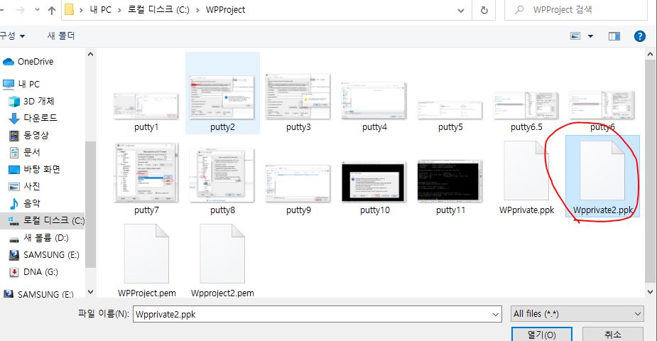 - 저희가 puttygen에서 생성한 나만의 키를 선택하시고(그림)