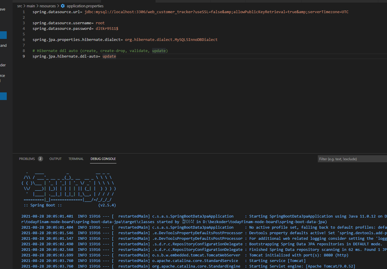 - Spring boot로 Mysql을 접속하기위해 프로젝트 실행을 했는데 생긴오류
