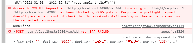 Spring boot로 RestAPI를 만들어서 Angular에서 전달한 데이터를 저장하는 과정에서 아래와 같은 에러가 발생하였다.